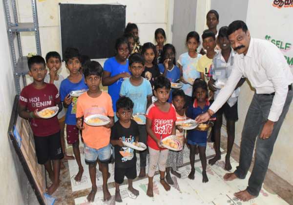 விழுப்புரம் ஜிஆர்டி தெருவில் அமைந்துள்ள சிறுவர் மன்றம் குழந்தைகளுக்கு எஸ்.பி சரவணன் உணவு வழங்கினார்.