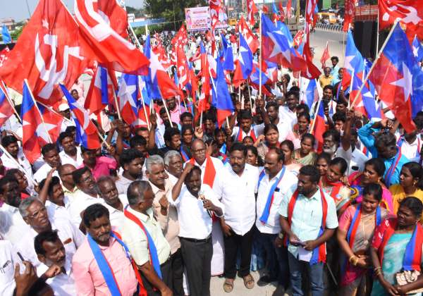 விழுப்புரம் புதிய பஸ் நிலையம் அருகே நகராட்சி திடலில் மார்க்சிஸ்ட் கம்யூனிஸ்ட் கட்சி சார்பில் ஆர்ப்பாட்டம் நடந்தது