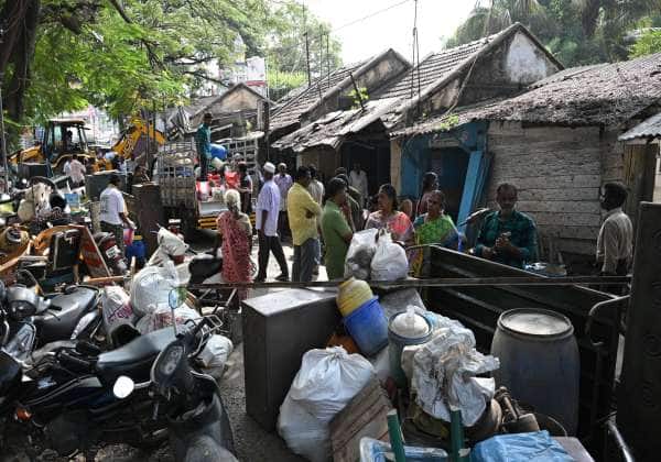 கோவை உக்கடம் லட்சுமி நரசிம்மர் கோவிலுக்கு சொந்தமான இடத்தில் ஆக்கிரமித்து கட்டப்பட்டு இருந்த கட்டடங்களை இந்து அறநிலையத்துறையினர் இடிக்க வந்ததையடுத்து பொருட்களை காலி செய்த அப்பகுதி மக்கள்.