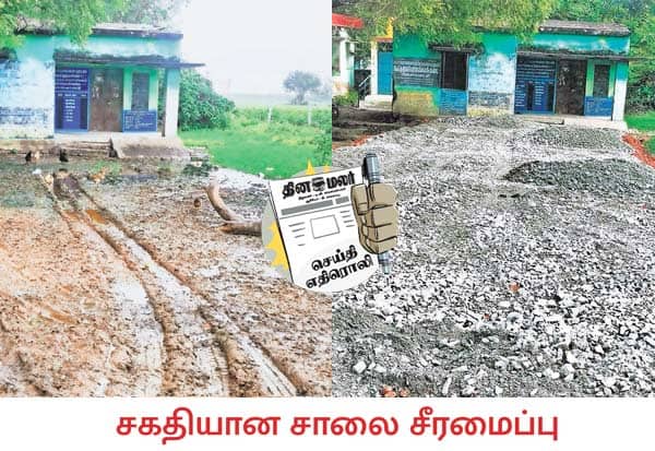 திருவள்ளூர் மாவட்டம், திருவாலங்காடு ஒன்றியம், சின்னமண்டலி கிராமத்தில் உள்ள ரேஷன் கடைக்கு செல்லும் சாலை சகதியாக இருந்தது குறித்து நம் நாளிதழில் படத்துடன் செய்தி வெளியானது. இதையடுத்து சகதியாக இருந்த சாலையில் ஜல்லி கொட்டி சமன் செய்யப்பட்டது.