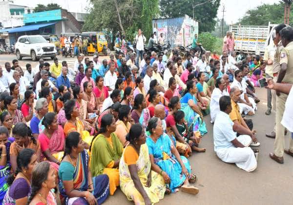சிவகங்கை அருகே காமராஜர் காலனி குடியிருப்பு மக்கள் வீடுகளை அகற்ற எதிர்ப்பு தெரிவித்து மறியலில் ஈடுபட்டவர்களை போலீசார் சமாதானம் செய்தனர்.