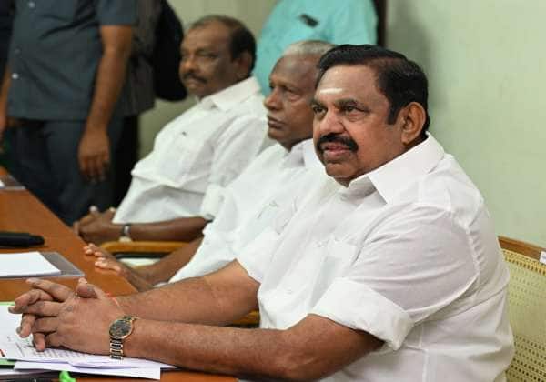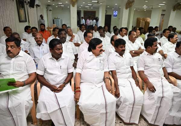 அ.திமு.க மாவட்ட செயலாளர்கள் கூட்டம் நடந்தது. இதில் பங்கேற்ற பொதுச் செயலாளர் பழனிசாமி, துணை தலைவர் முனுசாமி, முன்னாள் அமைச்சர்கள் நத்தம் விஸ்வநாதன், திண்டுக்கல் சீனிவாசன் மற்றும் வேலுமணி.