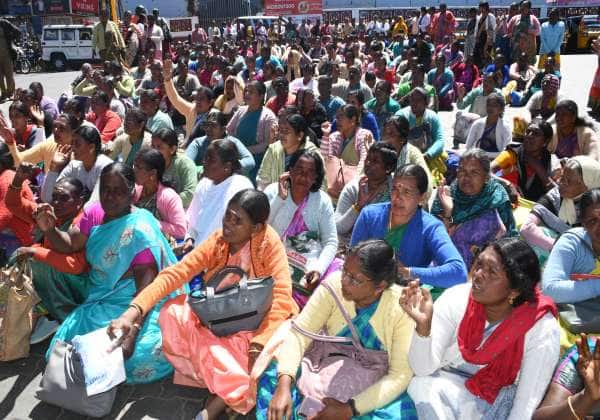 ஊட்டி எ.டி.சி., பகுதியில், சத்துணவு ஊழியர் சங்கத்தினர், சாலை மறியலில் ஈடுபட்டனர்.