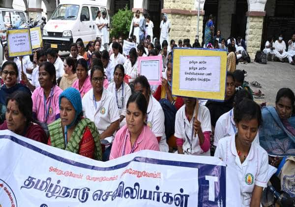 பணி நிரந்தரம் உள்ளிட்ட பல்வேறு கோரிக்கைகளை வலியுறுத்தி பகுதி நேர ஆசிரியர்கள் சென்னை நுங்கம்பாக்கத்தில் உள்ள டி.பி.ஐ. வளாகத்தில் போராட்டத்தில் ஈடுபட்டனர்.