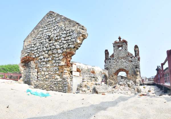 1964ல் ஏற்பட்ட புயலில் தனுஷ்கோடி மாதா சர்ச் சேதமடைந்து இன்றும் காட்சியளிக்கிறது