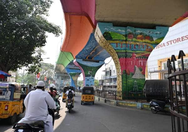 பெரம்பூர் மேம்பாலத்தின் கீழ் பகுதி, புனரமைக்கப்பட்டு வண்ண ஓவியங்கள் வரையப்பட்டுள்ளன
