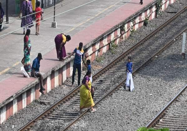 ஆபத்தான முறையில் தண்டவாளங்களை கடக்கும் பொதுமக்கள். இடம்: பெரம்பூர் ரயில் நிலையம்