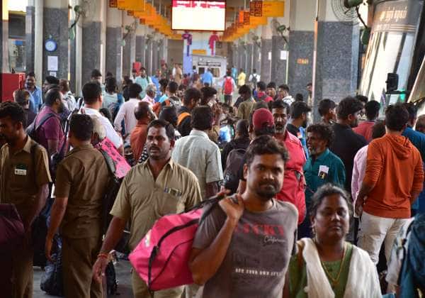 பள்ளி விடுமுறையை முன்னிட்டு திண்டுக்கல் ரயில்வே ஸ்டேஷனில் திரண்ட பயணிகள்.