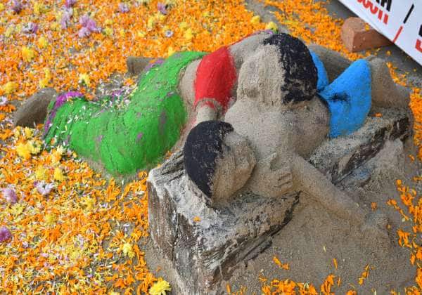 21ம் ஆண்டு சுனாமி நினைவு தினத்தையொட்டி, சென்னை காசிமேடு பவர் குப்பம் பகுதியில் உயிர் நீத்தவர்களுக்கு நினைவு கூறும் வகையில் மணல் சிற்பம் தத்ரூபமாக வைக்கப்பட்டுள்ளன.