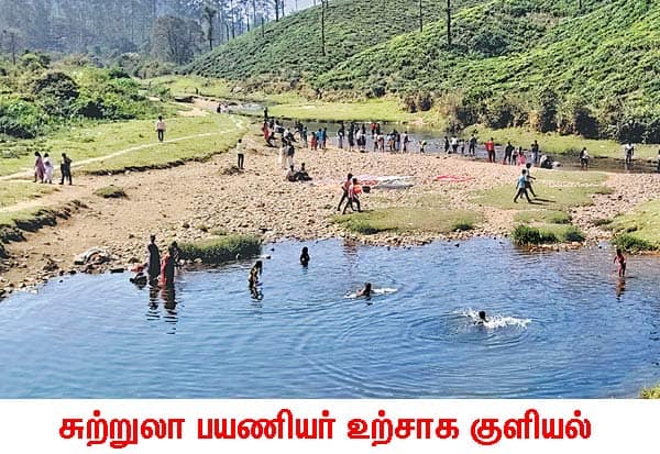 வால்பாறைக்கு சுற்றுலா பயணியர் வருகை அதிகரித்த நிலையில், சிறுகுன்றா கூழாங்கல் ஆற்றில், குளித்து மகிழ்ந்தனர்.