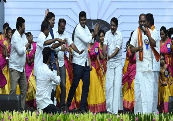 பா.ஜ., சார்பில் தமிழகம் தலை நிமிர தமிழனின் பயணம் எனும் மாநாடு கோவை மலுமிச்சம்பட்டியில் நடந்தது. இதில் வள்ளி கும்மியாடிய பா.ஜ., தலைவர் நயினார் நாகேந்திரன், அண்ணாமலை.
