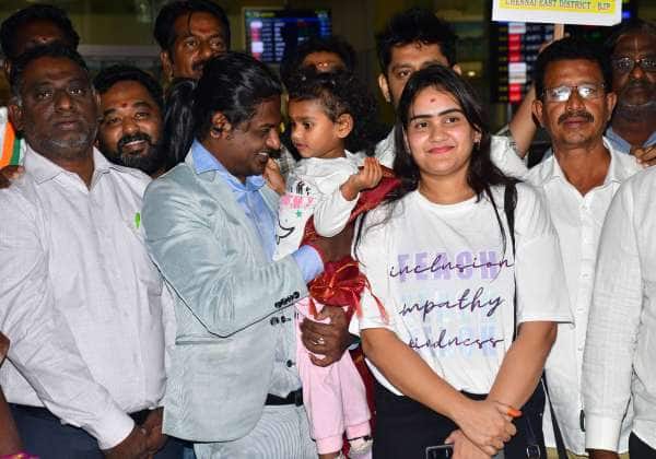 ரஷ்யாவில் மீட்கப்பட்ட மருத்துவர் ஜெகதீஷ் காமராஜை குடும்பத்தினர் மற்றும் பாஜக முக்கிய நிர்வாகிகள் வரவேற்றனர்