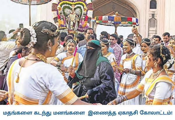 ஹைதராபாத்தில் உள்ள பத்மநாப சுவாமி கோவிலில் நடந்த வைகுண்ட ஏகாதசி கோலாட்ட ஊர்வலத்தில் முஸ்லிம் பெண் ஒருவர் பங்கேற்று மற்றவர்களுடன் சேர்ந்து ஆடினார். இந்த புனித நாளில், பாரம்பரிய உடைகளில் இருந்த ஹிந்துப் பெண்களுடன் புர்கா அணிந்த முஸ்லிம் பெண் ஆடியது சமூக ஒற்றுமையையும், கலாசாரப் பரிமாற்றத்தையும் பறைசாற்றுவதாக இருந்தது.