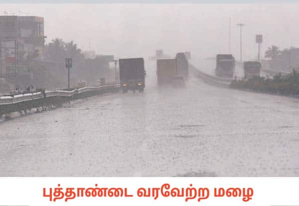 புத்தாண்டை வரவேற்கும் விதமாக நேற்று மழை பெய்தது. இடம்: சென்னை- கொல்கட்டா தேசிய நெடுஞ்சாலை, கும்மிடிப்பூண்டி.