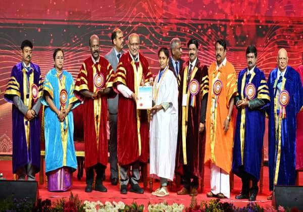 டாக்டர் எம்.ஜி.ஆர் கல்வி மற்றும் ஆராய்ச்சி நிறுவனத்தின் 34வது பட்டமளிப்பு விழா சென்னையில் நடந்தது. இதில் துணை ஜனாதிபதி சி. பி. ராதாகிருஷ்ணன் மாணவர்களுக்கு பட்டங்களை வழங்கினார். உடன் இடமிருந்து வலம் - ஏ.சி.எஸ் மருத்துவக் கல்லூரி மற்றும் மருத்துவமனை செயலர் ரவிகுமார், துணைவேந்தர் கீதாலட்சுமி, தமிழக சுகாதாரத் துறை அமைச்சர் சுப்பிரமணியன், டாக்டர் எம்.ஜி.ஆர் கல்வி மற்றும் ஆராய்ச்சி நிறுவனத்தின் வேந்தர் ஏ.சி சண்முகம், தமிழக பா.ஜ தலைவர் நயினார் நாகேந்திரன், பல்கலையின் தலைவர் அருண்குமார் மற்றும் பதிவாளர் பழனிவேலு. இடம்: ஏ.சி.எஸ் மருத்துவக் கல்லூரி மற்றும் மருத்துவமனை வளாகம், வேலப்பன்சாவடி.