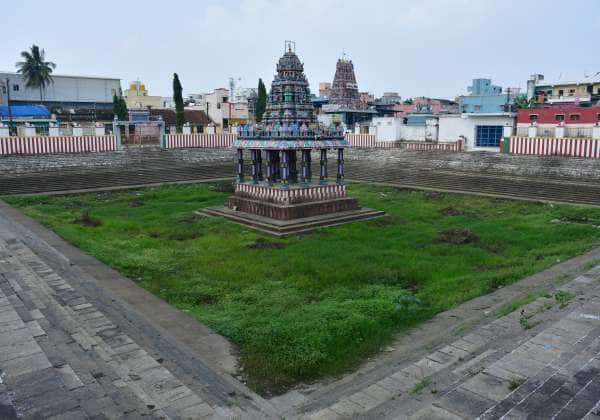 ரங்கநாத பெருமாள் கோவில் குளம் சீரமைக்கும் பணி நடந்து வருகிறது. இடம்: திருநீர்மலை