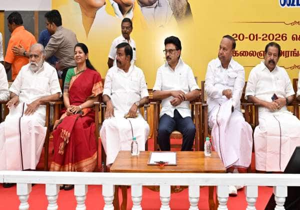 தி.மு.க மாவட்ட செயலாளர்கள் கூட்டம் சென்னை அறிவாலயத்தில் நடந்தது. இதில் பங்கேற்ற முதல்வர் ஸ்டாலின், எம்.பிக்கள் கனிமொழி, டி.ஆர் பாலு, அமைச்சர்கள் பெரியசாமி, நேரு மற்றும் பொன்முடி.