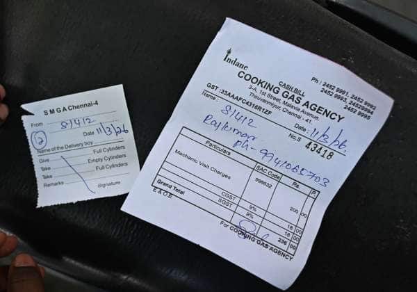 வீட்டு உபயோக சமையல் எரிவாயு சிலிண்டர் பற்றாக்குறையை பயன்படுத்தி கூடுதலாக மெக்கானிக் சார்ஜ் எனக்கூறி 236 சேர்த்து 1165 ரூபாய்க்கு விற்கப்படும் சிலிண்டர்.இடம் : திருவான்மியூர்