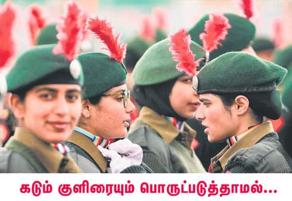 நாளை நடைபெறும் குடியரசு தின விழாவினை, கொண்டாட நாடே உற்சாகமாக தயாராகி வருகிறது. காஷ்மீரின் ஸ்ரீநகரில் கடும் குளிரையும் பொருட்படுத்தாமல் நடந்த ஒத்திகை அணிவகுப்பை முன்னின்று வழி நடத்திய மாணவி, சக மாணவியின் சீருடைப் பட்டையைச் சரி செய்தார்.