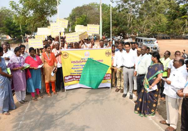 விழுப்புரத்தில் நெடுஞ்சாலை துறை சார்பில் நடந்த சாலை பாதுகாப்பு விழிப்புணர்வு பேரணியை கலெக்டர் ஷேக் அப்துல் ரஹ்மான் கொடியசைத்து துவக்கி வைத்தார்.