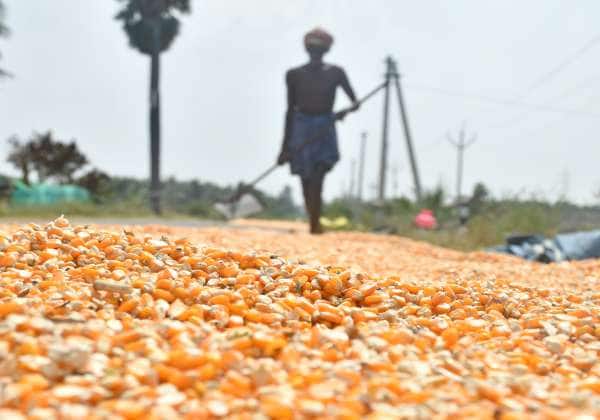 தூத்துக்குடி மாவட்டம் திருமங்கலகுறிச்சி பகுதியில் மக்காச்சோள பயிர்கள் அறுவடை துவங்கிய நிலையில், அறுவடை செய்த மக்காச்சோளத்தை காய வைக்கும் பணியில் ஈடுபட்டுள்ள விவசாயி..