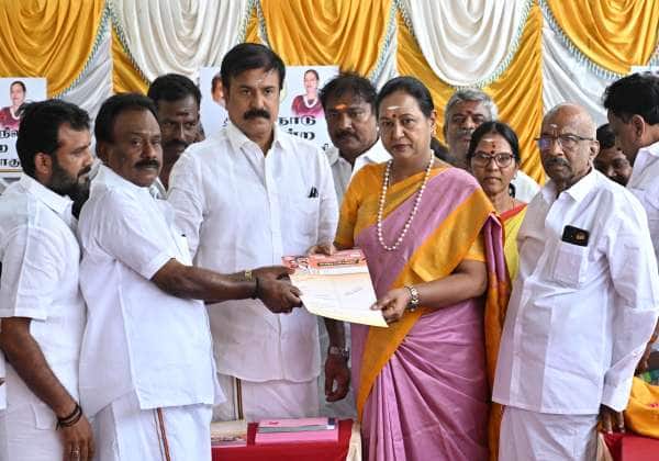 சட்டமன்றத் தேர்தலை முன்னிட்டு தே.மு.தி.க சார்பில் விருப்பமனு விநியோகம் துவங்கியது. விருப்பமனுக்களை வழங்கிய அக்கட்சியின் பொதுச் செயலாளர் பிரேமலதா. இடம்: கோயம்பேடு, சென்னை