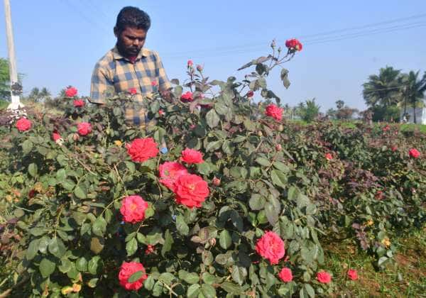 காதலர் தினத்தை முன்னிட்டு ரோஜா பூக்களின் விலை அதிகரித்துள்ள நிலையில் திருநெல்வேலி மாவட்டம் மானூர் அருகே கள்ளத்திகுளம் பகுதியில் ரோஜாக்களை விற்பனைக்கு கொண்டுசெல்ல பறிக்கும் விவசாயி..