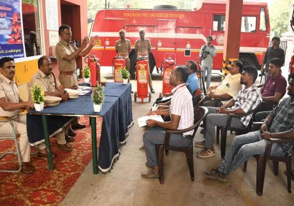 தமிழ்நாடு தீயணைப்பு மற்றும் மீட்பு பணி துறை சார்பில் கோலையில் தனியார் துறையில் வேலை பார்க்கும் பாதுகாப்பாளர்களுக்கான தீ பாதுகாப்பு பயிற்சி நடந்தது. இடம் கோவை, தீயணைப்பு துறை அலுவலகம்
