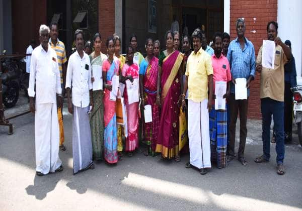 கடலூர் கலெக்டர் அலுவலகத்தில் நடந்த பொதுமக்கள் குறை கேட்டு கூட்டத்திற்கு வீட்டுமனை பட்டா கேட்டு திருமாணிக்குழி டி புதுப்பாளையம் கிராம பொதுமக்கள் கலெக்டரிடம் மனு கொடுக்க வந்தனர்
