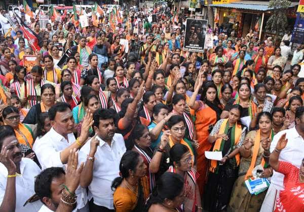 பெண்களின் பாதுகாப்பு, சட்டம் ஒழுங்கு சீர்குலைவு உள்ளிட்ட பல்வேறு பிரச்சனைகளை முன்வைத்து ஆர்.எஸ். புரம் காந்தி பார்க் பகுதியில் பா.ஜ., மகளிர் அணி சார்பில் நடந்த ஆர்ப்பாட்டம்.