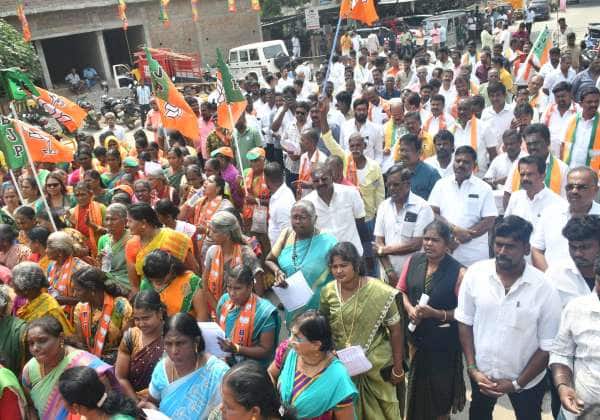 தி.மு.க., ஆட்சியில் பெண்களுக்குப் பாதுகாப்பில்லை என குற்றம்சாட்டி, பா.ஜ., மகளிர் அணி சார்பில் திருநெல்வேலி ஜங்ஷன் ரயில்வே ஸ்டேஷன் முன்பாக போராட்டம் நடந்தது.