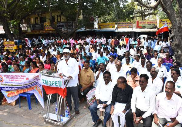 கடலூர் தலைமை தபால் நிலையம் அருகில் தமிழ்நாடு அரசு நியாய விலை கடை பணியாளர்கள் சங்கம் சார்பில் ஆர்ப்பாட்டம் நடந்தது