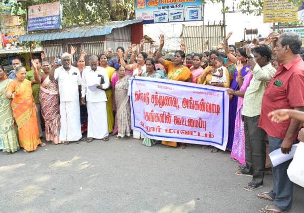 சென்னை வள்ளுவர் கோட்டம் அருகில் பணி நிரந்தரம் உள்ளிட்ட கோரிக்கைகளை வலியுறுத்தி ஊரக வாழ்வாதார இயக்க பணியாளர்கள் சார்பில் பத்தாம் நாளாக போராட்டத்தில் ஈடுபட்டனர்.