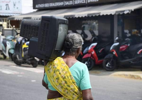 மகளிர் உரிமைத் தொகை தகுதி வாய்ந்தவர்களுக்கு மட்டும்தான் சொன்னாங்க... தேர்தல் வேற நெருங்குது, இந்த நேரத்துல டிவியை கொஞ்சம் மறைச்சு வைக்கலாம் என எடுத்து செல்கிறாரோ இந்த மூதாட்டி. இடம்: பொள்ளாச்சி பல்லடம் ரோடு தேர்முட்டி.