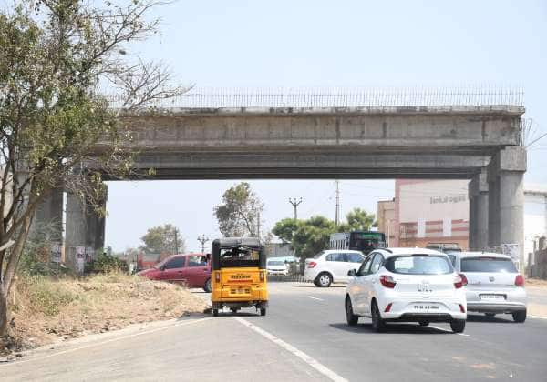 பொள்ளாச்சி புளியம்பட்டி அருகே நான்கு வழி சாலையில் ரோட்டில் கடக்க நிற்கும் வாகனங்கள்.