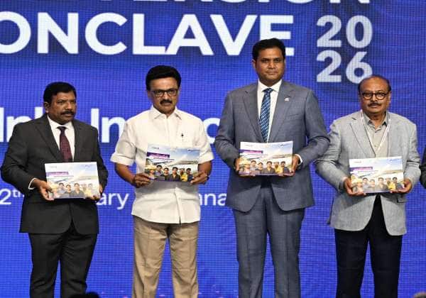 சென்னையில் நடந்த புரிந்துணர்வு ஒப்பந்தங்கள் செயலாக்க மாநாட்டில் முதலீடுகளின் முன்னேற்ற அறிக்கையை வெளியிட்ட முதல்வர் ஸ்டாலின். உடன் இடமிருந்து தலைமைச் செயலர் முருகானந்தம், தொழில்துறை அமைச்சர் ராஜா, பாரத் பயோ டெக் நிறுவனத்தின் செயல் தலைவர் கிருஷ்ணா எல்லா.இடம் : கிண்டி