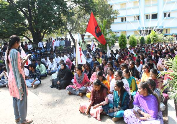 உடுமலை அரசு கலைக் கல்லூரி வளாகத்தில் காலவரையற்ற போராட்டத்தில் ஈடுபட்ட கவுரவ விரிவுரையாளர்களுக்கு ஆதரவாக வகுப்புகளை புறக்கணித்து ஆர்ப்பாட்டத்தில் ஈடுபட்ட மாணவர்கள்.