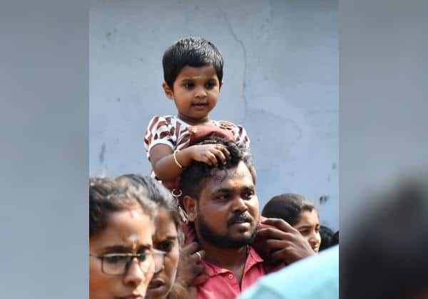 திருப்பூர், வீரராக பெருமாள் கோவிலில் விஷ்ணுபதி புண்ணிய காலத்தை முன்னிட்டு பக்தர் ஒருவர் குழந்தையை தோளில் சுமந்தவாறு பிரகாரத்தை சுற்றி வந்தார்.