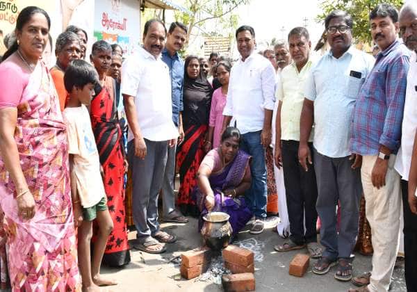 திருப்பூர், மன்னரை, சத்யா காலனியில் மகளிர் உரிமை தொகை 5 ஆயிரம் ரூபாய் வந்ததை தி.மு.க தொண்டர்கள் பொங்கல் வைத்து கொண்டாடினர்.