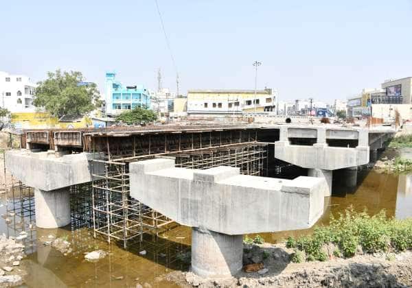 திருப்பூர், ஈஸ்வரன் கோவில் வீதியை இணைக்கும் விதமாக நொய்யல் ஆற்றில் புதியதாக பாலம் கட்டுமான பணிகள் தாமதாக செயல்படுகிறது.