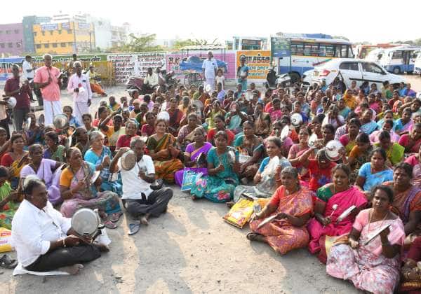 விழுப்புரம் புதிய பஸ் நிலையம் அருகே உள்ள நகராட்சி திடலில் தமிழ்நாடு சத்துணவு அங்கன்வாடி சங்கங்களின் கூட்டமைப்பு சார்பில் பல்வேறு கோரிக்கை வலியுறுத்தி நூதன போராட்டத்தில் ஈடுபட்டனர்.