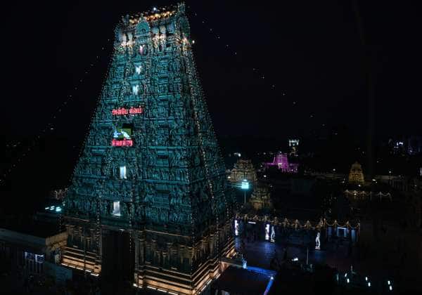 சென்னை மயிலாப்பூர் கபாலீஸ்வரர் கோவில் கோபுரங்களில் காண்போரை கவரும் வகையில் வண்ண வண்ண மின் விளக்குகளால் அலங்காரத்தில் ஜொலிக்கின்றன.