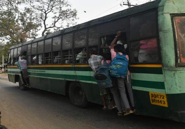 ஆபத்தான முறையில் படியில் தொங்கியவாறு பேருந்தில் பயணம் செய்யும் பள்ளி மாணவர்கள்.. இடம்: வீரிருப்பு, தென்காசி மாவட்டம்..