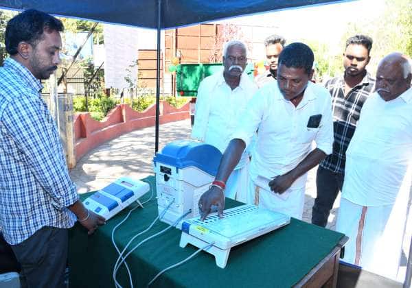 ஊட்டி கலெக்டர் அலுவலகத்தில், மாவட்ட நிர்வாகம் மற்றும் தேர்தல் ஆணையம் சார்பாக பொதுமக்களுக்கு வாக்கு இயந்திரம் குறித்து விழிப்புணர்வு ஏற்படுத்தப்படுகிறது.
