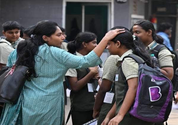 10 ஆம் வகுப்பு சி.பி.எஸ்.இ பொதுத்தேர்வு துவங்கியது. தேர்வு துவங்கும் முன் தங்கள் ஆசிரியர்களிடம் ஆசி பெற்று சென்ற மாணவியர். இடம்: பக்தவத்சலம் வித்யாஷ்ரம் பள்ளி, கொரட்டூர்.