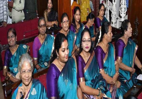 2026-2027 ஆண்டுக்கான நிதிநிலை அறிக்கையை தாக்கல் கூட்டத்தில் குறிப்பிட்ட வரிசையில் அமரும் பென் கவுன்சிலர்கள் ஒரே ஆடை அணிந்து வந்தனர்.இடம்: ரிப்பன் மாளிகை.