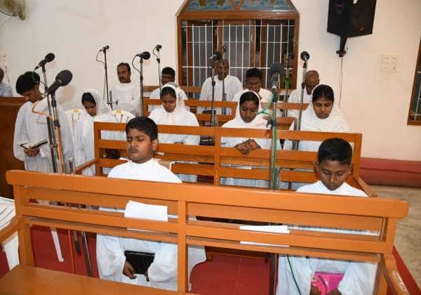 சாம்பல் புதனையொட்டி உடுமலை கிறிஸ்து நாதர் ஆலயத்தில் நடந்த சிறப்பு பிரார்த்தனையில் கலந்து கொண்டவர்கள் .