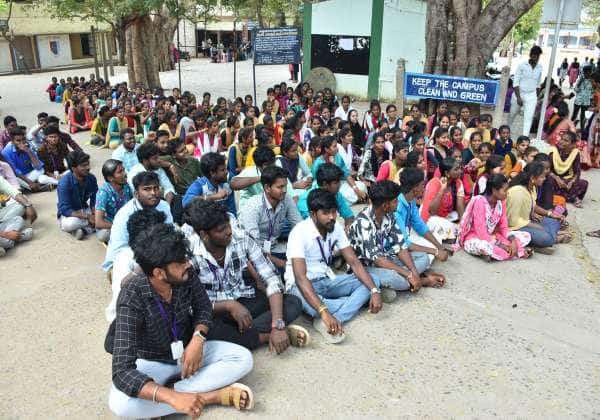 விருத்தாசலம் கொளஞ்சியப்பர் அரசு கலைக் கல்லூரியில் பயிலும் முதுகலை மாணவர்களுக்கு இலவச லேப்டாப் வழங்க கோரி போராட்டத்தில் ஈடுபட்டனர்.