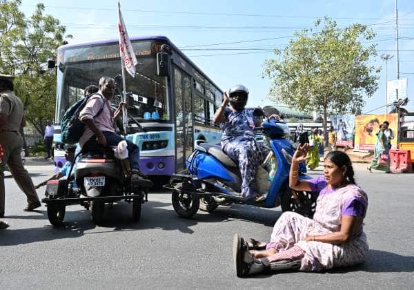 ஊக்கத்தொகையை உயர்த்துக்கோரி, மாற்றுத் திறனாளிகள் அமைப்பினர் சாலை மறியல் போராட்டத்தில் ஈடுபட்டனர்.இடம்: கோயம்பேடு 100 அடி சாலை