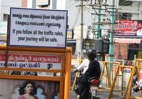 சாலை விதிகளை மதிக்க வேண்டும் என, போலீசார் சார்பில், திருப்பூரில் உள்ள ரோடுகளில் வைக்கப்பட்டுள்ள பேனர்.
